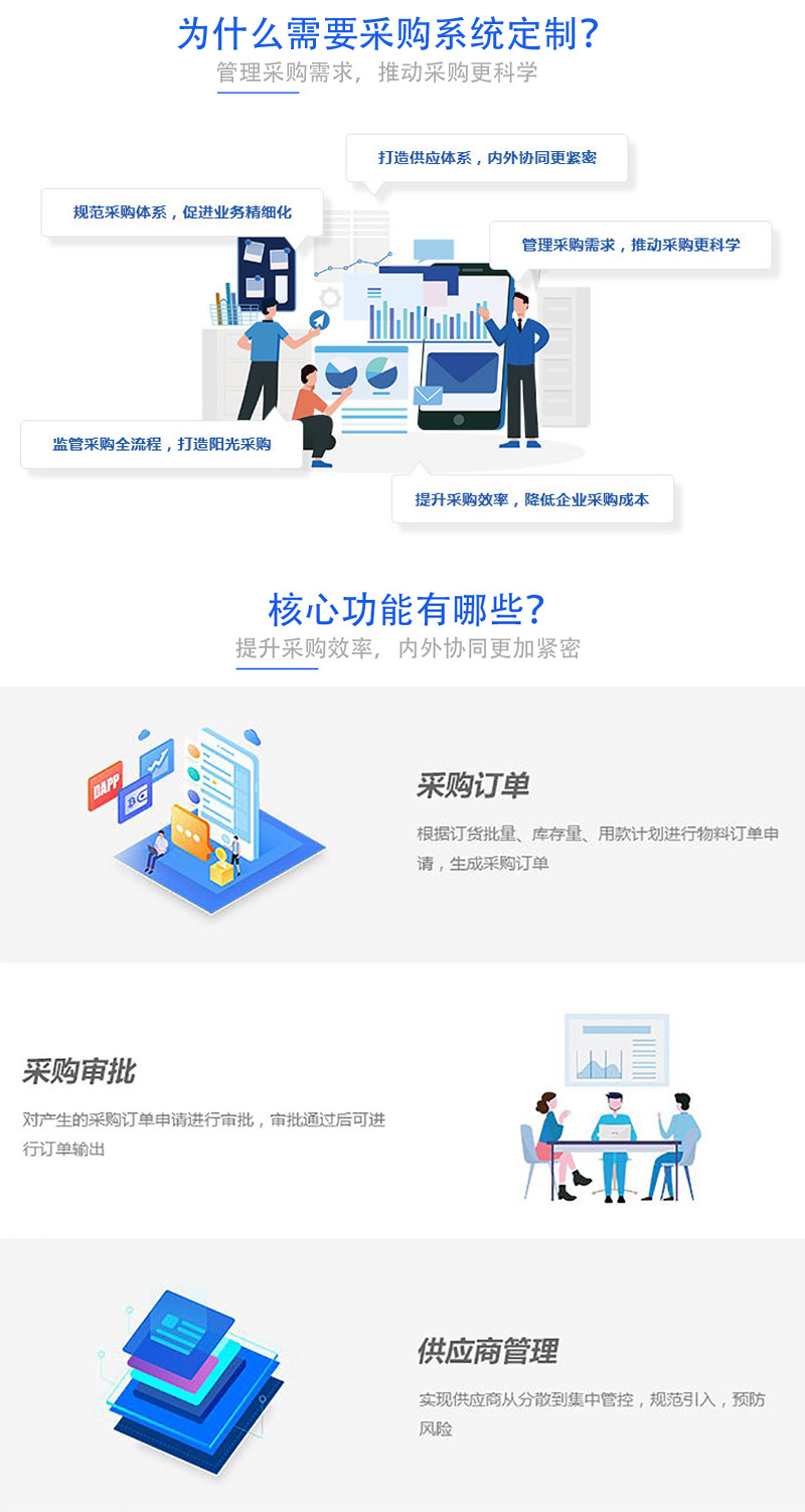 采購系統定制,致力于幫助企業改進采購管理,縮短業務管理周期時間,減低企業采購成本,提升采購質量和現金管理水平,助力企業打造綠色智能供應鏈。